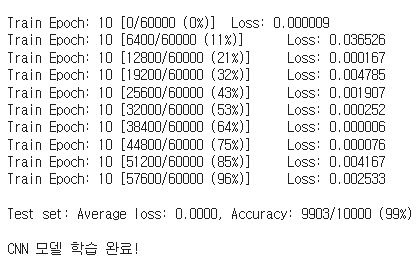 # Conv/Pooling을 거친 Flatten된 출력을 받아 10개의 클래스(0~9)로 분류합니다.
