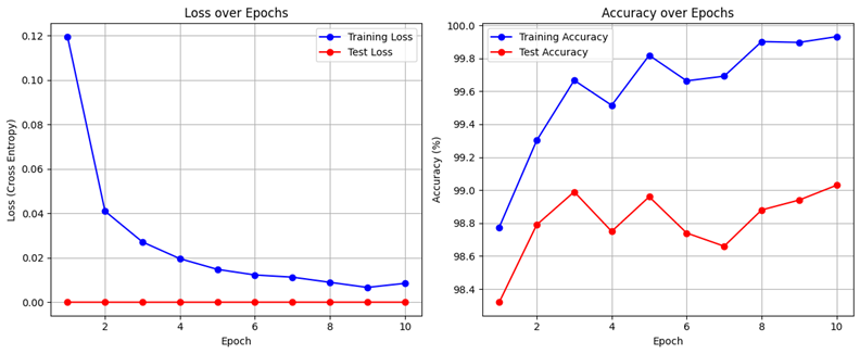 print(f'\nTest set: Average loss: {test_loss:.4f}, Accuracy: {correct}/{len(test_loader.dataset)} ({100. * correct / len(test_loader.dataset):.0f}%)\n')