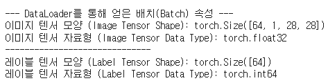 print("\n--- DataLoader를 통해 얻은 배치(Batch) 속성 ---")